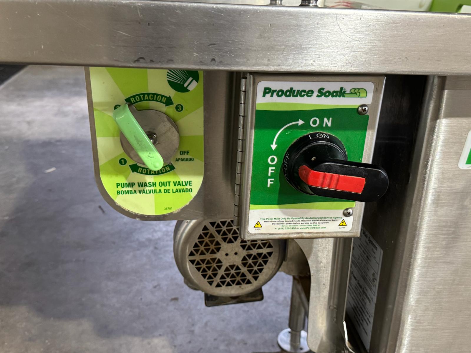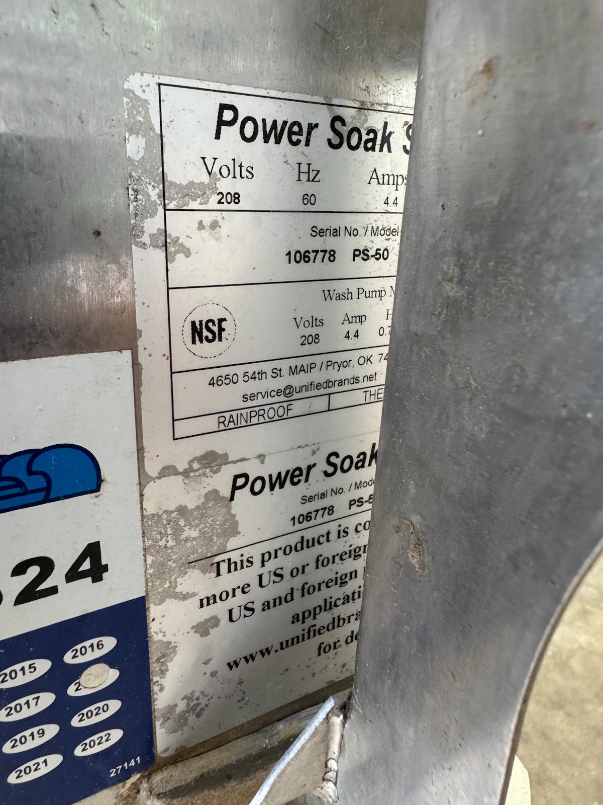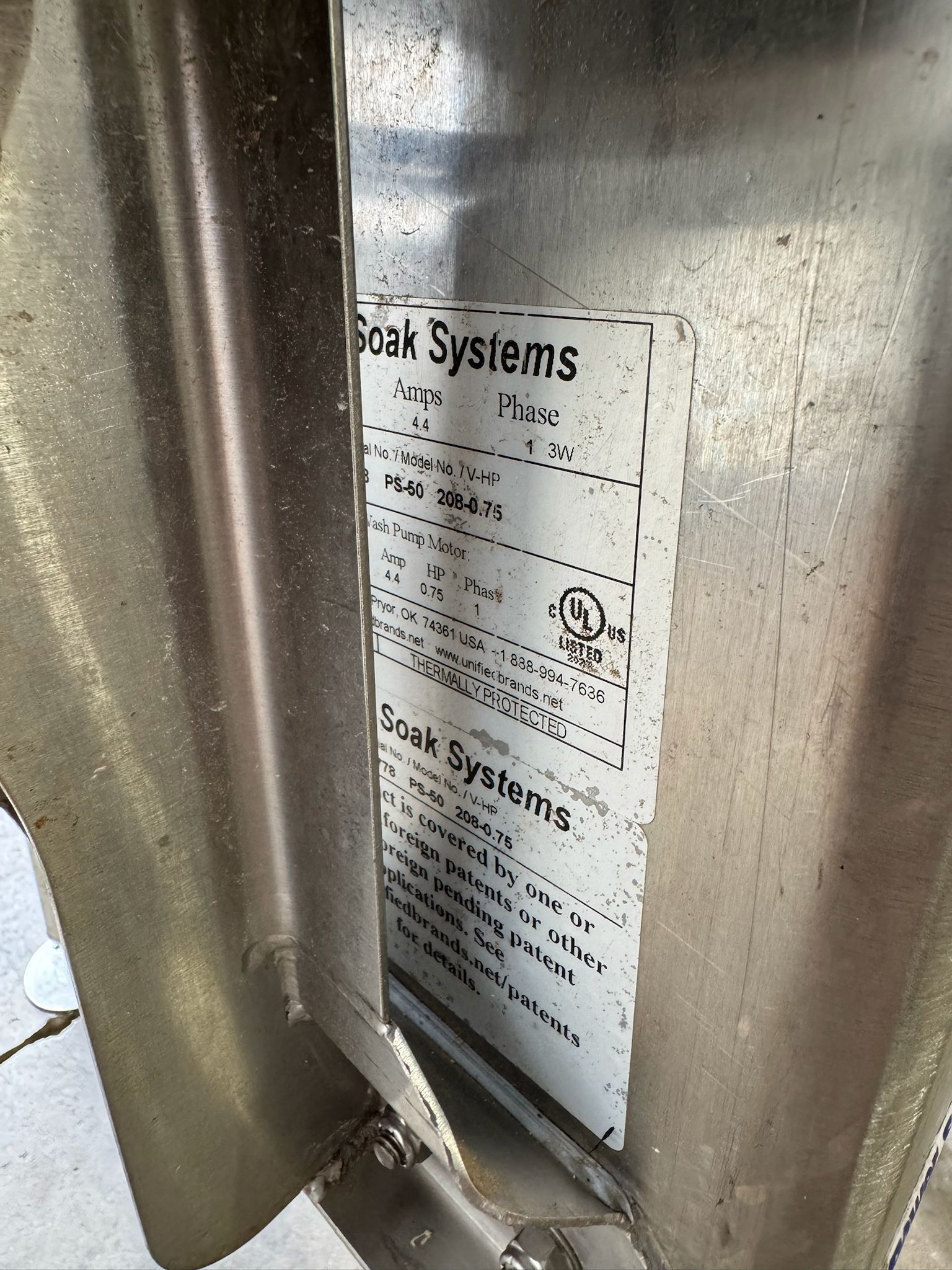 This sink is used but has been cleaned and tested. There are some scuffs and scratches from use. Three compartments are 20"X 24"X 13.5"D and the power soak compartment is 17.75" x 24.5" x 19"D. The overall dimensions are 112" X 30". Due to the length of this item, it will be pick up only.