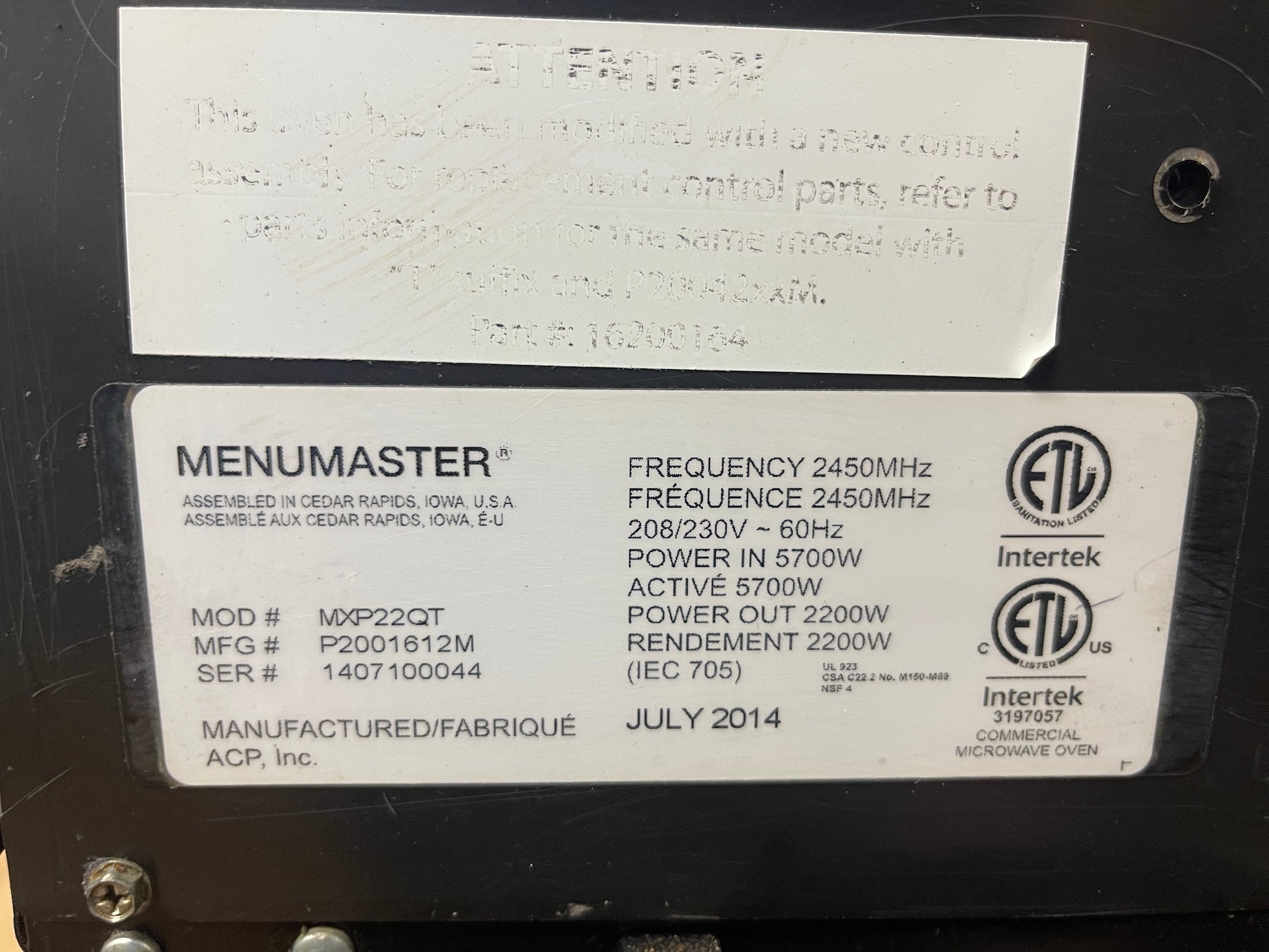 Used 2014 Amana Menumaster MXP22QT Accelerated Oven 220V - 1049Hrs