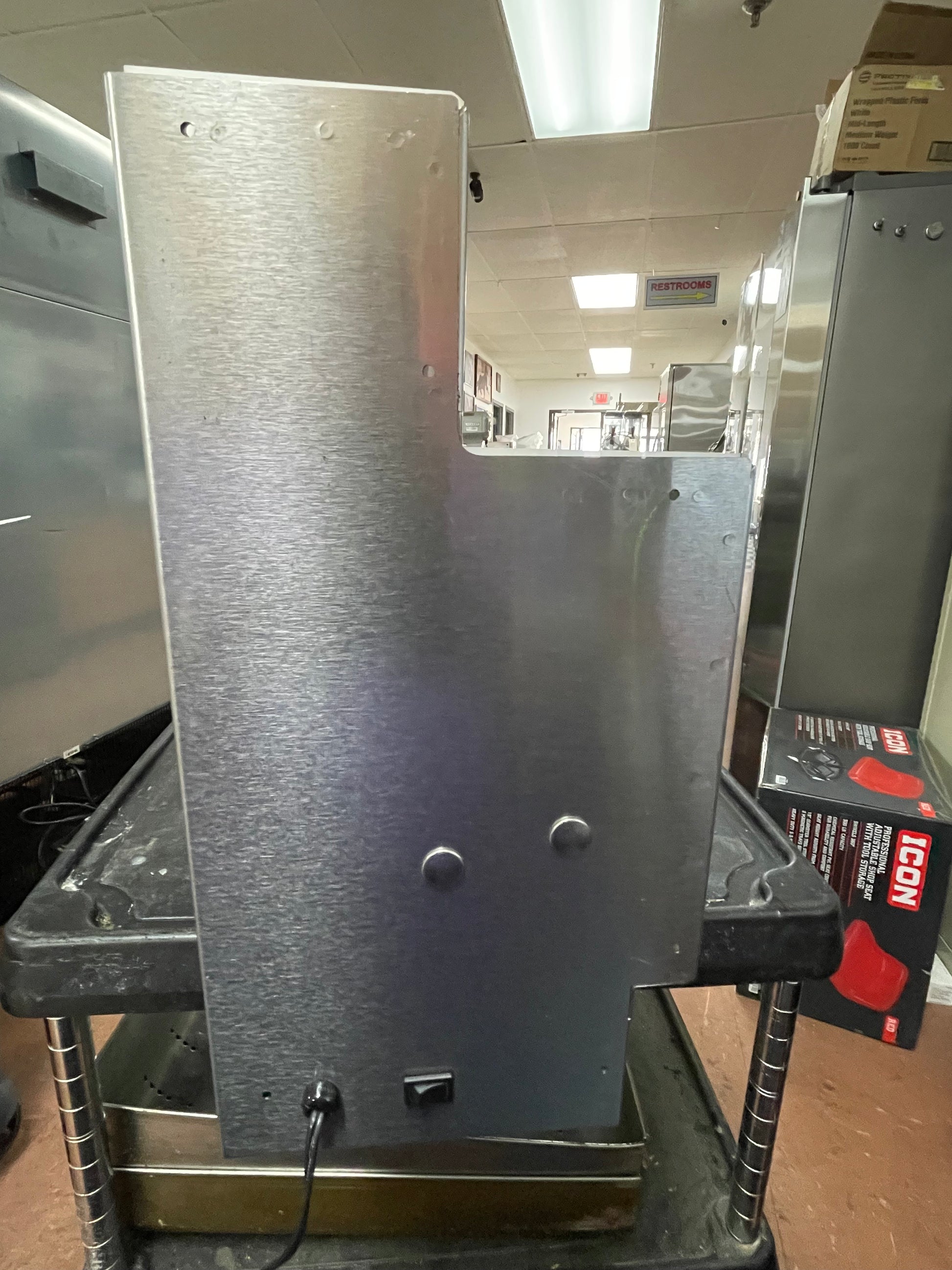 This display is used but has been cleaned and tested. There are some scuffs and scratches on it from use Overall this is in good condition. The clear front also lights up so you can put a sign or logo on it. The dimensions are 36"W x 8"D x 15.5"H. Due to the fragile nature of this item it will be pick up only at our location.