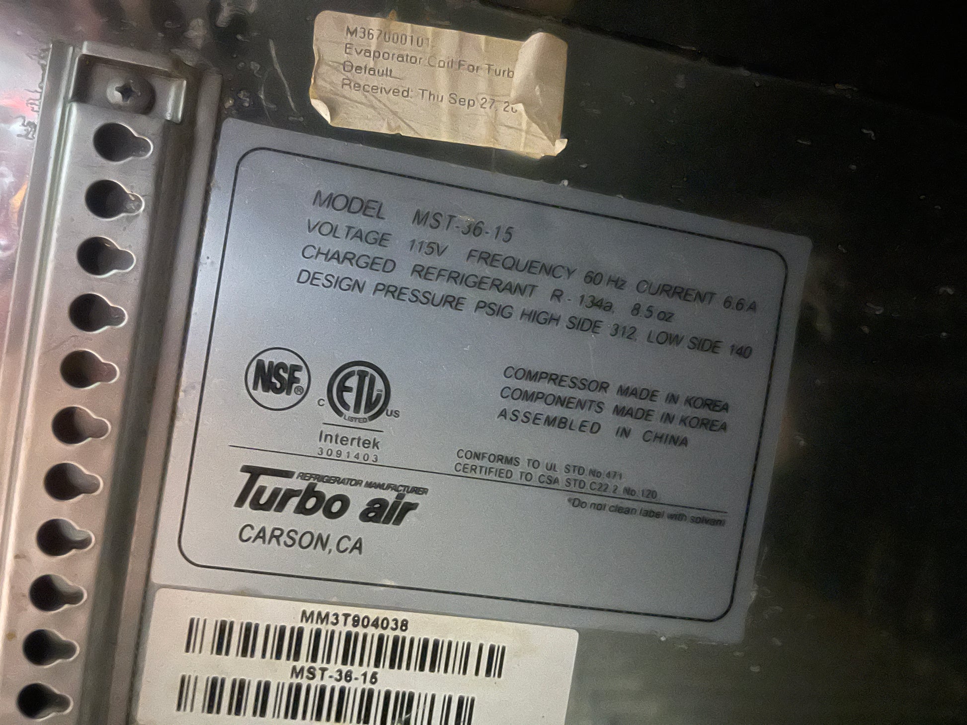 Offering extra pan space and storage capacity, this Turbo Air MST-36-15 36" M3 series mega top refrigerated salad / sandwich prep table helps you deliver the freshest salads and sandwiches! Perfect for sandwich shops and pizzerias that offer a wide selection of ingredients and toppings, this mega top adds efficiency and convenience to your establishment. Equipped with 2 adjustable, polyethylene-coated wire shelves, this prep table provides ample work space and storage. Sandwich prep tables make it easy to keep your refrigerated ingredients close by as your staff works to assemble made-to-order subs and sandwiches.