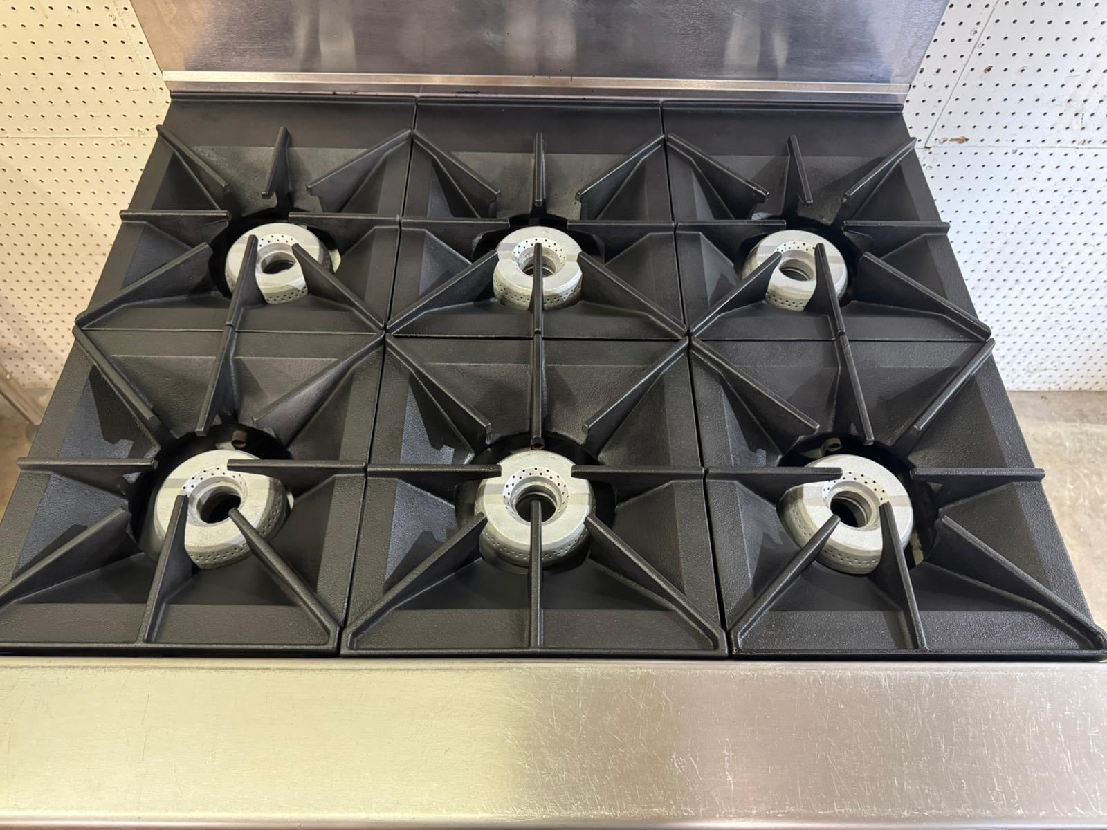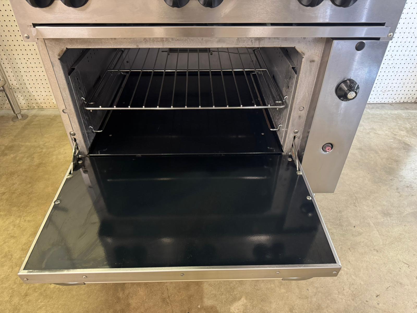 This heavy-duty, versatile piece of cooking equipment is perfect for those tight spaces where you need one piece of equipment to do multiple tasks. Since this unit features 6 open top burners with a standard oven base, you can fry and simmer on top while eliminating wasted space by using the oven below for your baking and warming needs. For quick ignition, the unit comes with a shrouded flash tube pilot system per two burners. A natural gas connection is required for operation.