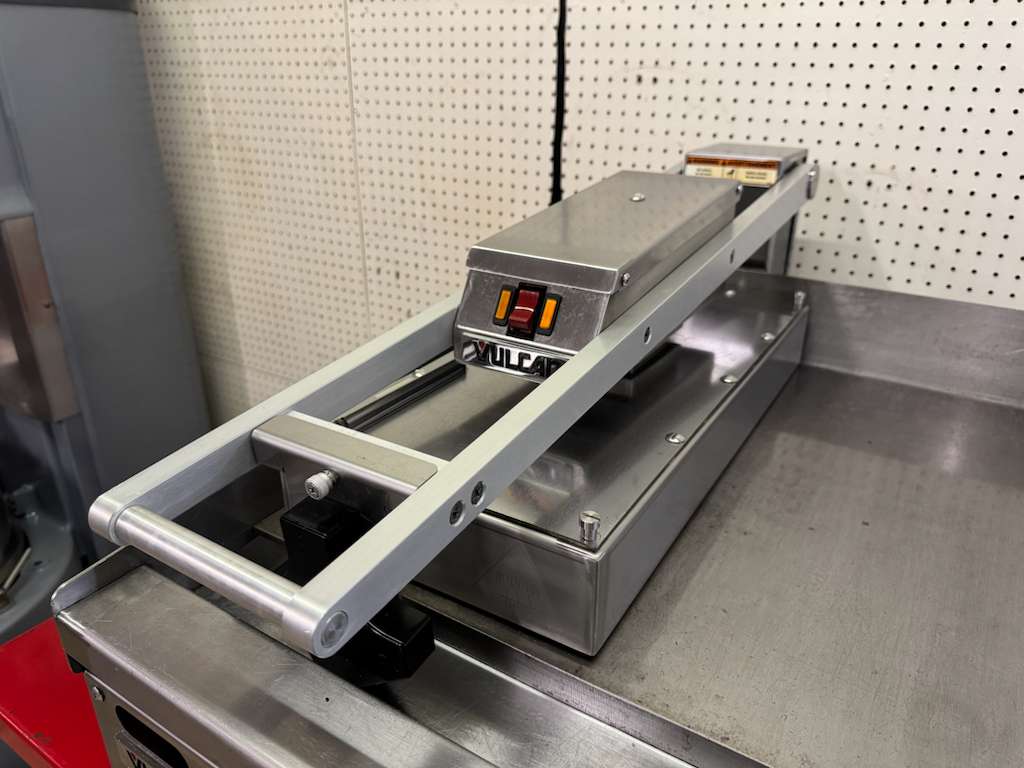 Increase overall efficiency and reduce cook times dramatically by heating items on both sides simultaneously with the Vulcan VMCS-101 heavy duty clamshell electric griddle top with Rapid Recovery plate! This product adds compelling value without taking up precious space. Designed to mount to compatible Vulcan and Wolf gas and electric griddles, this griddle top has an easy to use one-hand clamshell lift mechanism that lowers the cooking plate onto bacon, burgers, paninis, or any other food that you want to cook on both sides. A 9/16" thick fully welded Rapid Recovery composite griddle plate heats up quickly and evenly for a consistent cooking surface. To fit your unique needs, this product can be mounted on the left or right of your existing heavy-duty griddle.