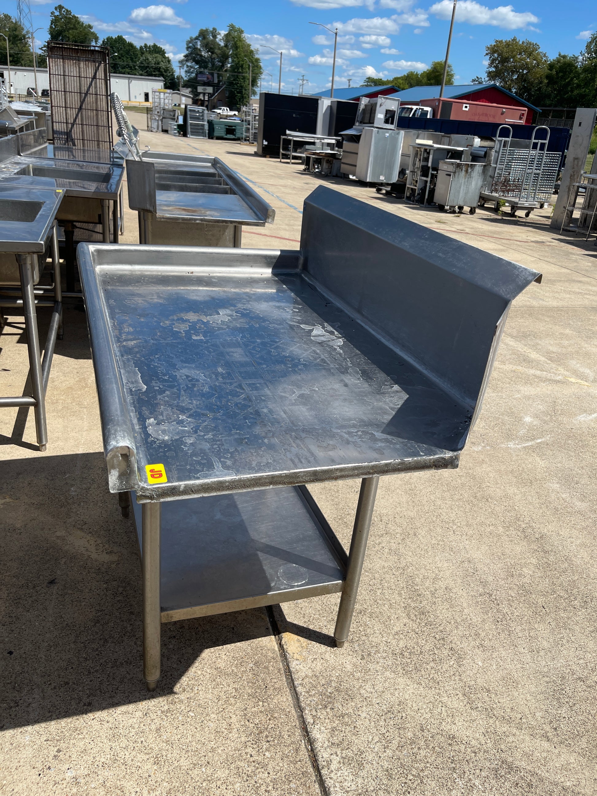 This drainboard is used but is in good usable condition. The dimensions are 48"W x 30"D x 34"H with an 11" backsplash.