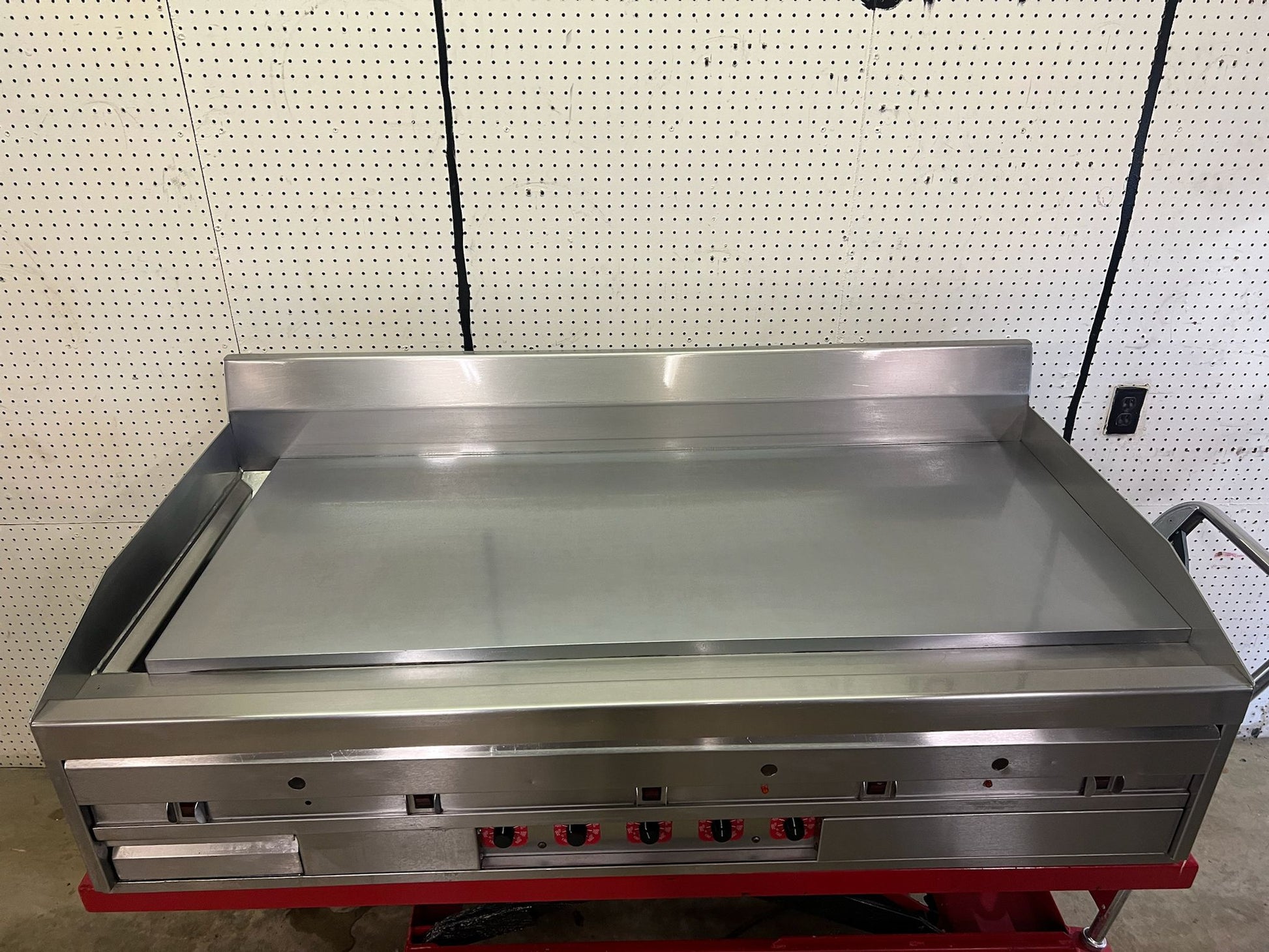 This griddle is used but is in great condition. This has been cleaned and tested. There are some scuffs and scratches for use.