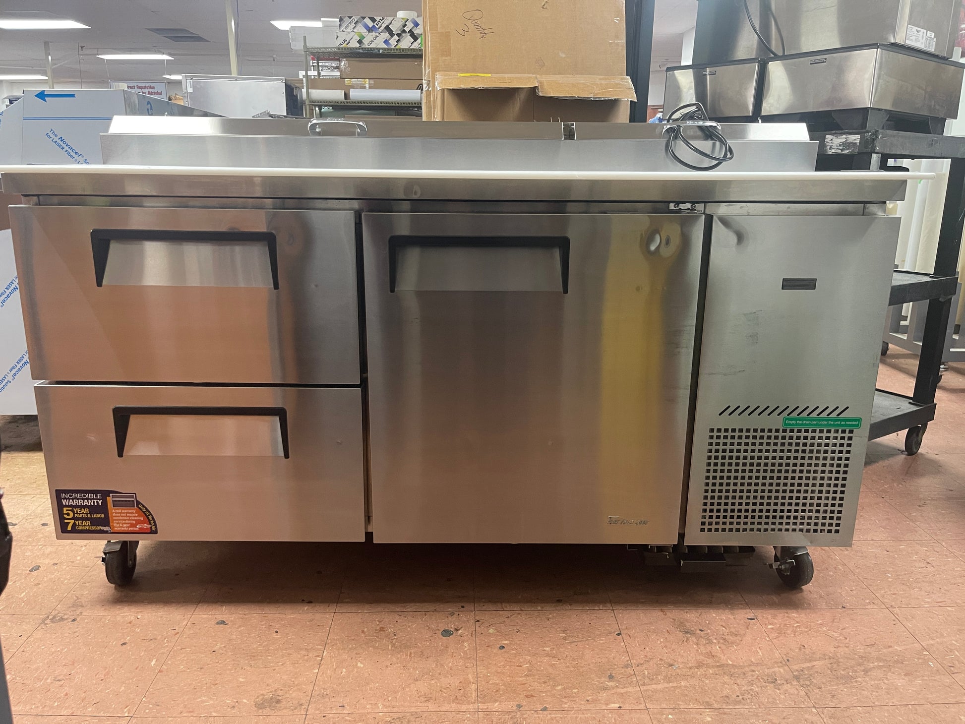 Used 67" Turbo Air TPR-67SD-D2-N Pizza Prep Table with 1 Door and 2 Drawers 115V - WO1