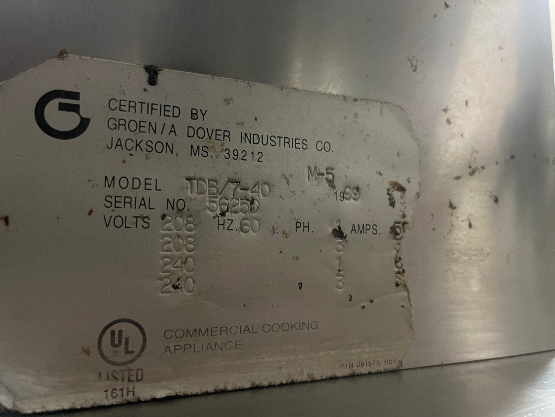 Used Groen TDB/7-40 Electric Tilting Stainless Steel Steam Kettle 40qt 208V 3Ph