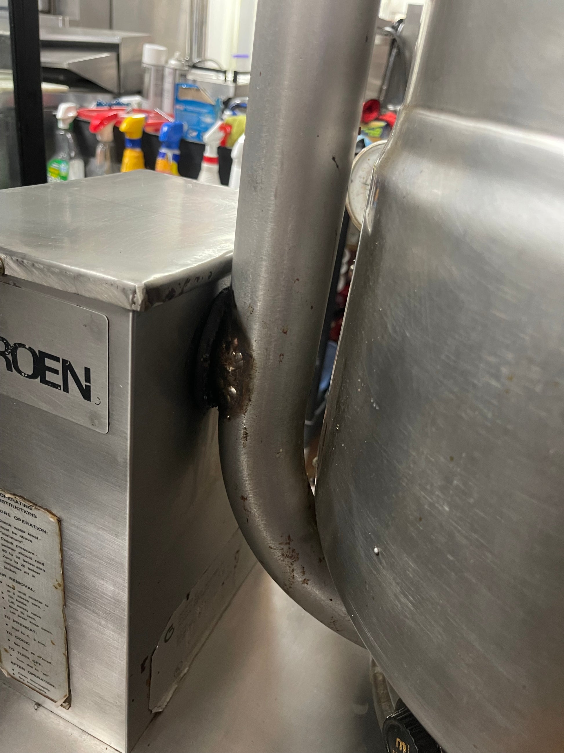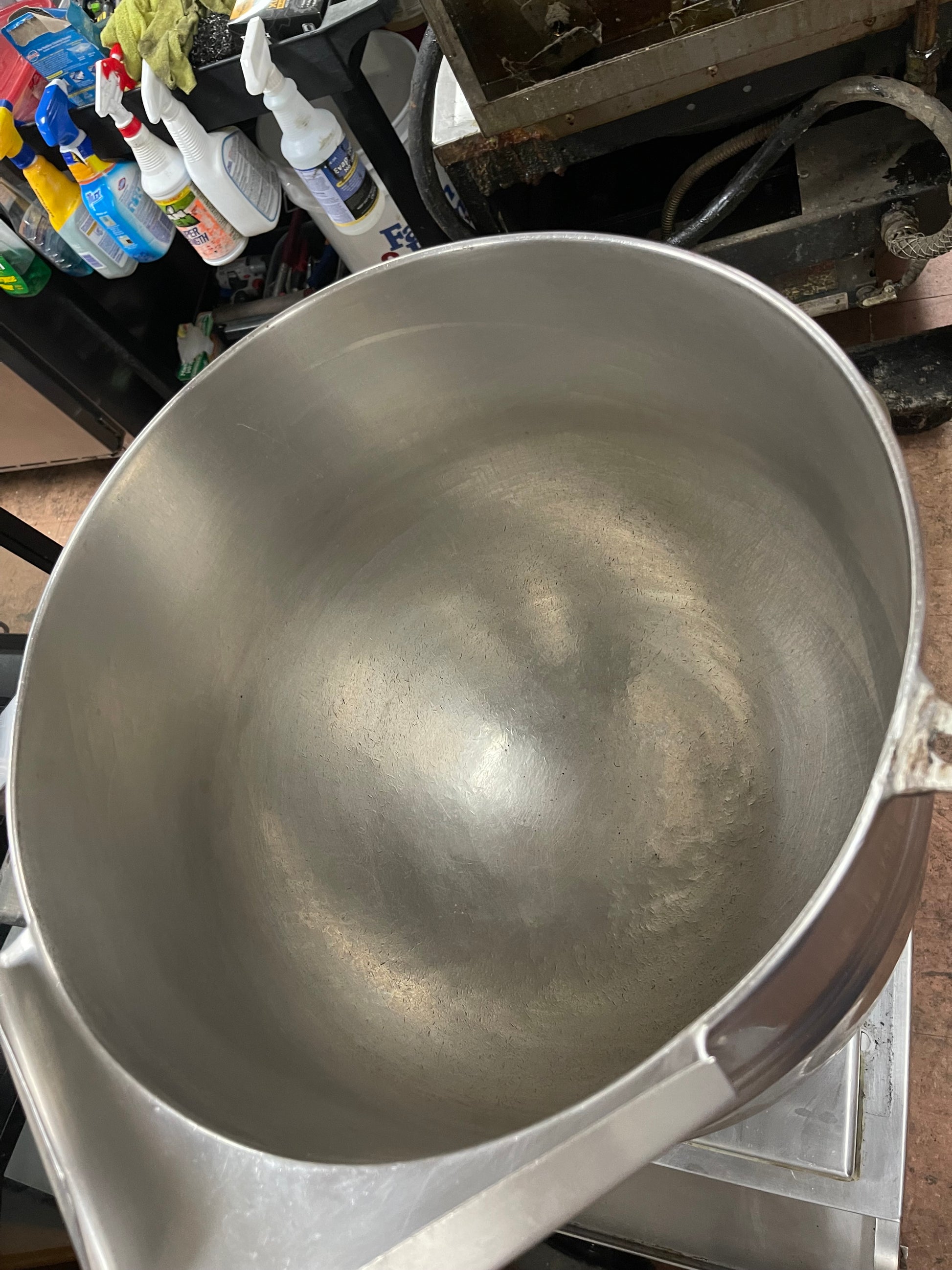 This kettle is used but has been cleaned and tested. There are some scuffs and scratches from use. The dimensions are 27"W x 22"D x 47"H.