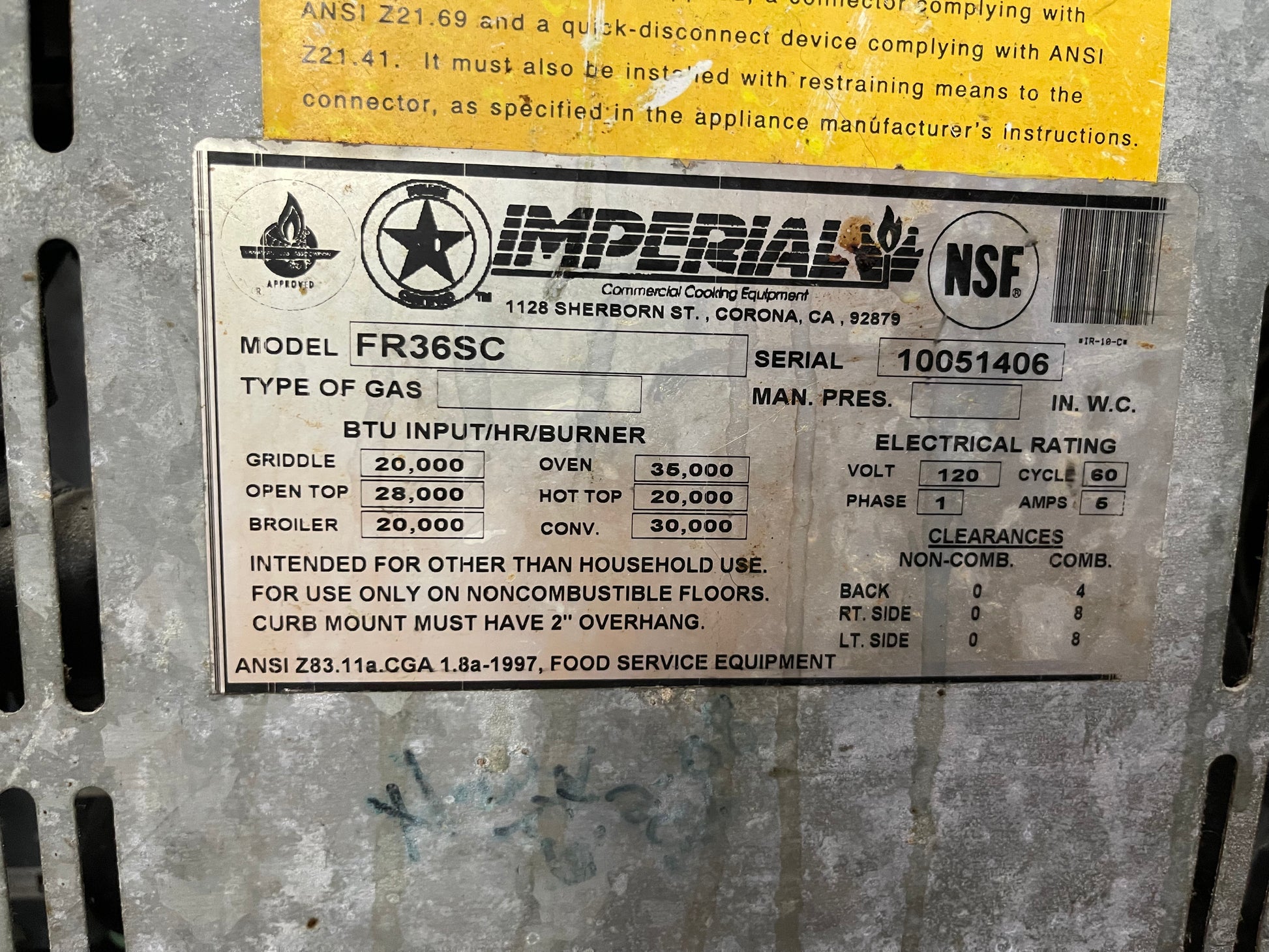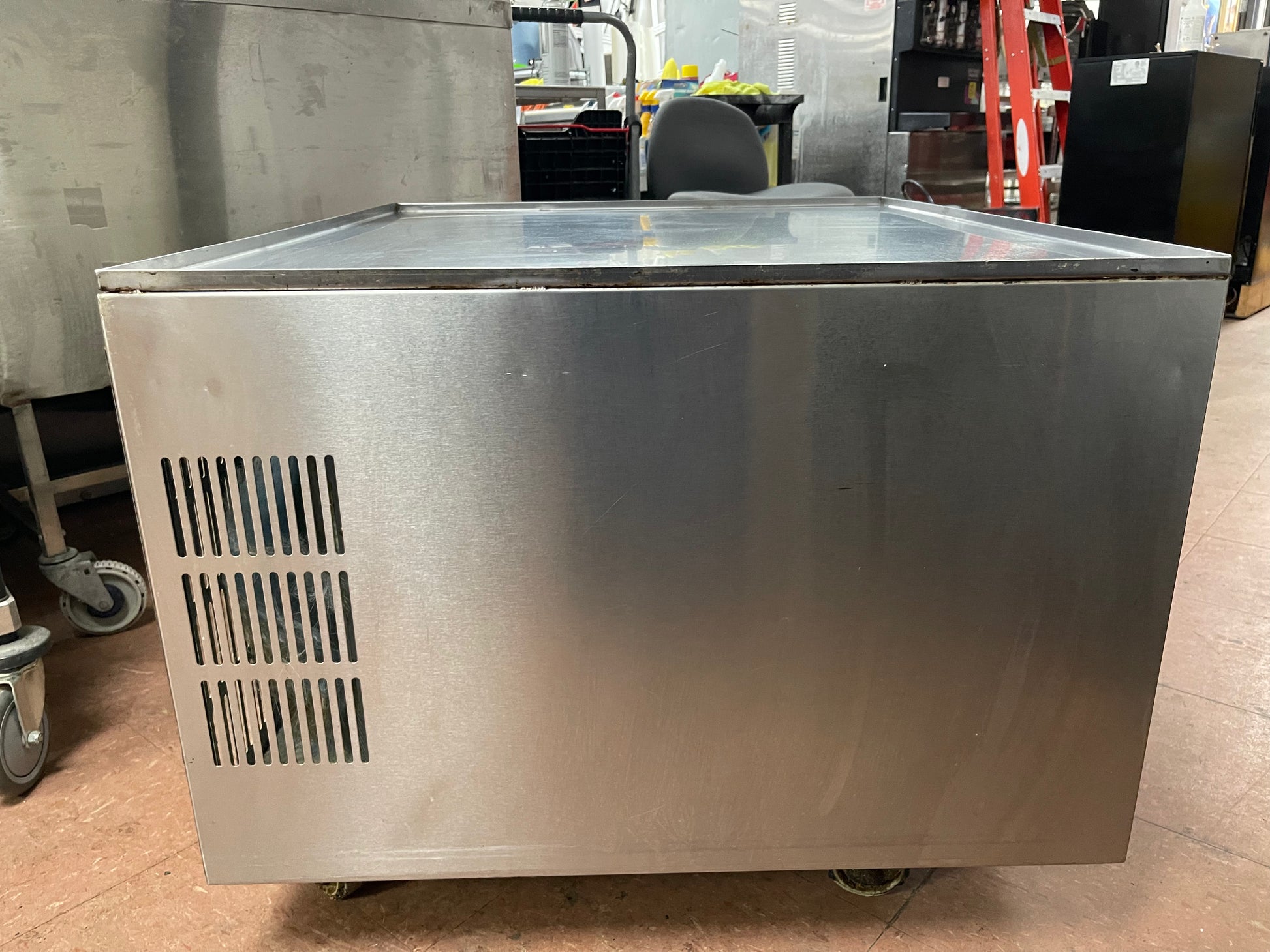 This chef base is used but has been cleaned and tested, There are some scuffs and scratches on it from use. The dimensions are 36"W x 30"D x 23.5"H with a 1/2" Lip on all 4 sides.