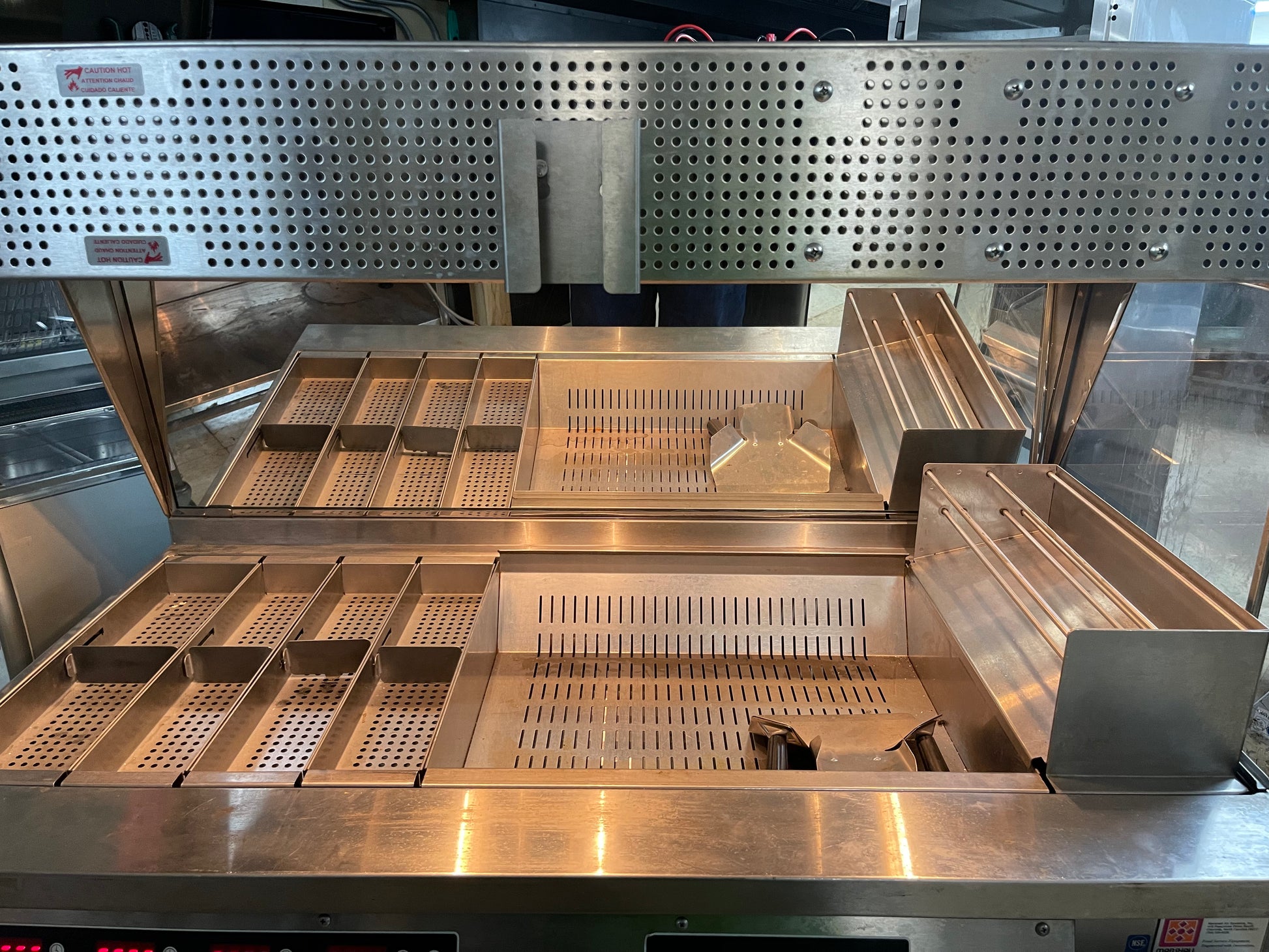 This fryer dump station is used but has been cleaned and tested. There may be minor scuffs or scratches on it from normal use. At least one of the light bulbs will need replaced. This is a very nice and well built dump station. The size of this station can handle a high volume of food items. Only what is pictured is included.