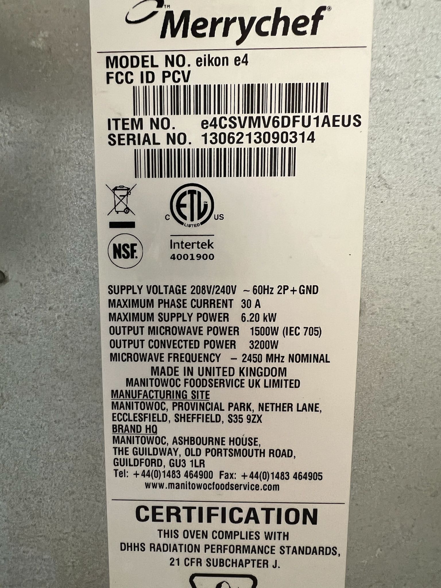 Used Merrychef eikon e4 High-Speed Accelerated Cooking Countertop Oven 220V