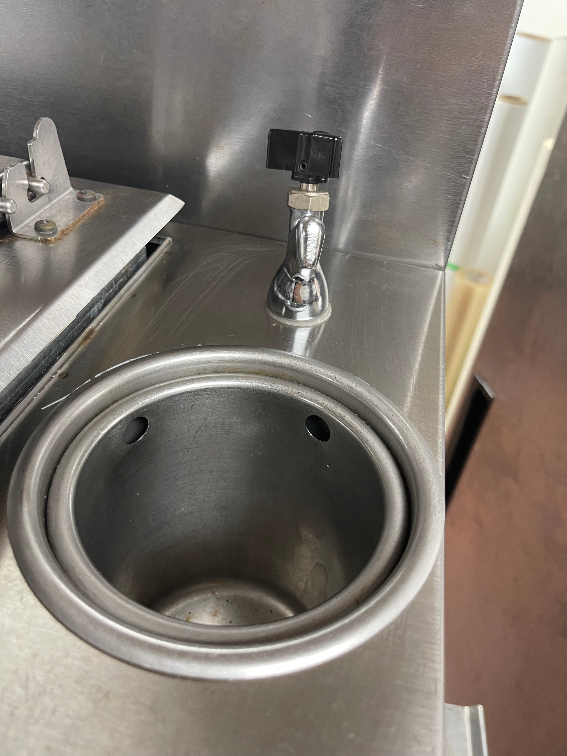 This dipping center is used but has been cleaned and tested. There are some scuffs and scratches from use.