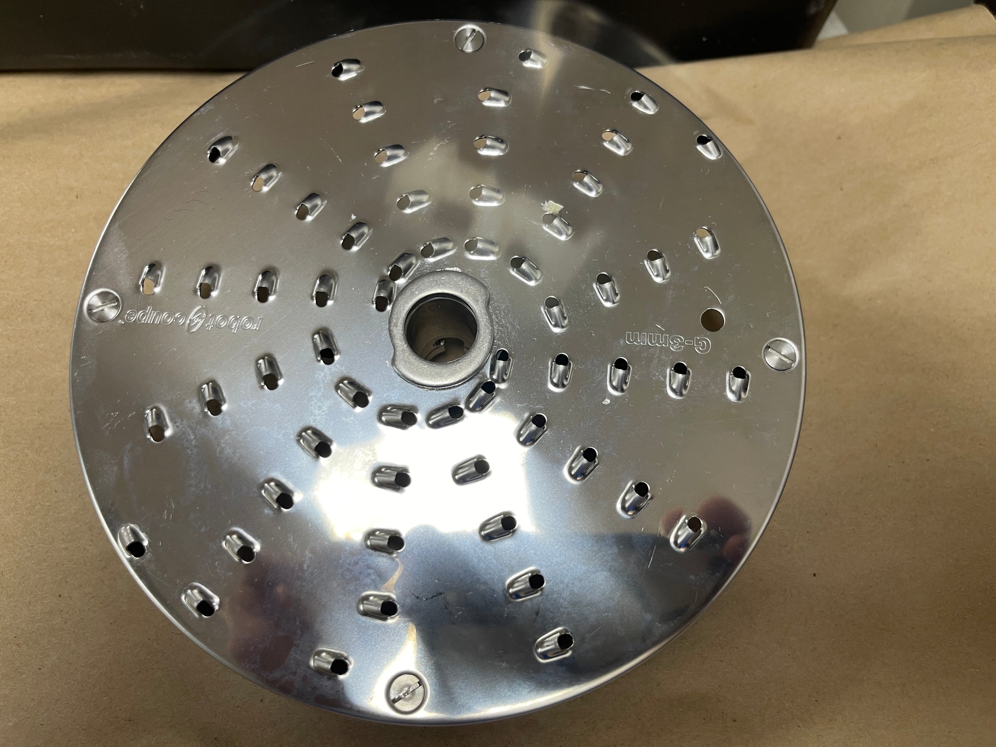 This is a very lightly used grating disc. This came out if a test kitchen so there was little use.