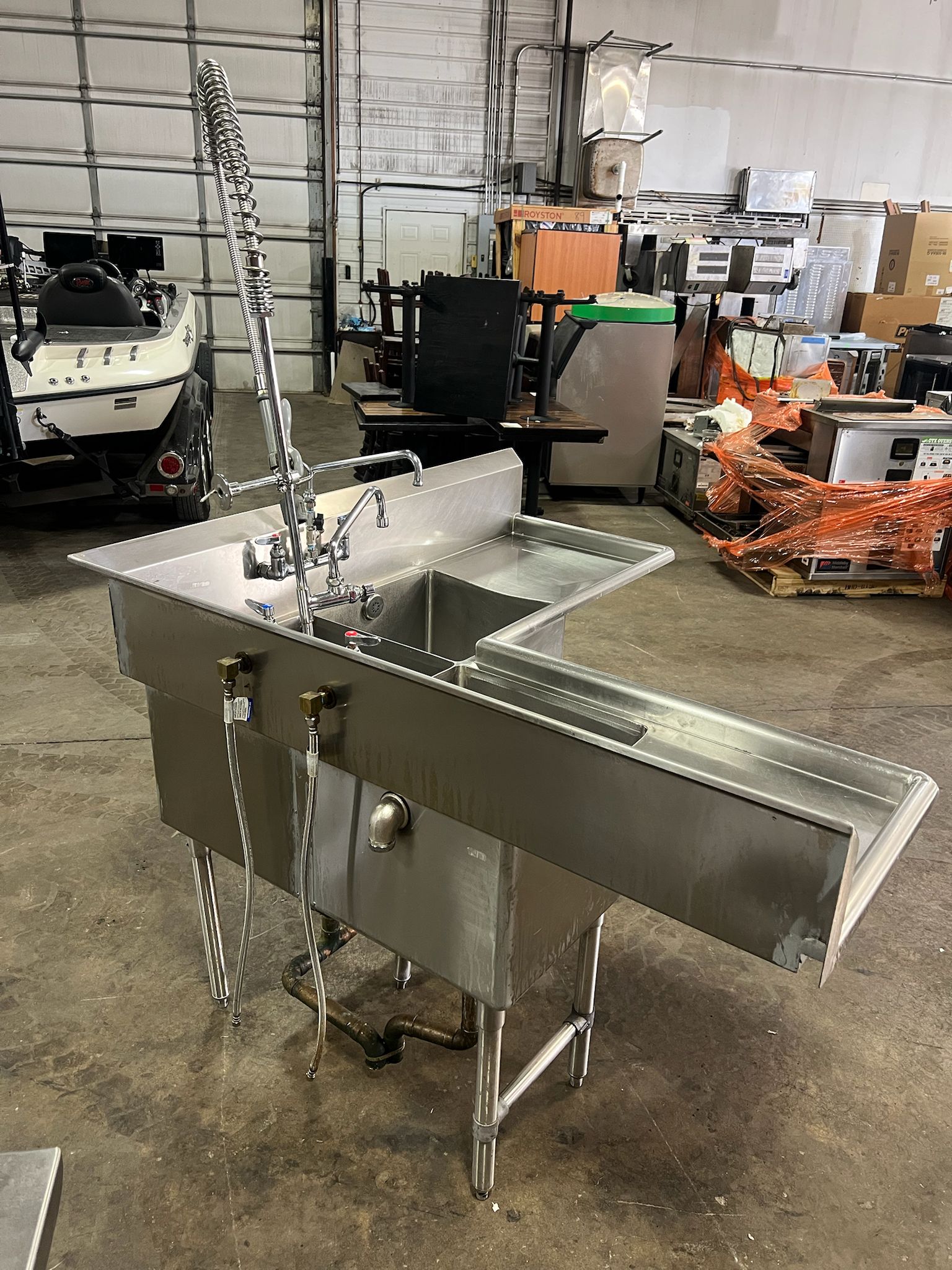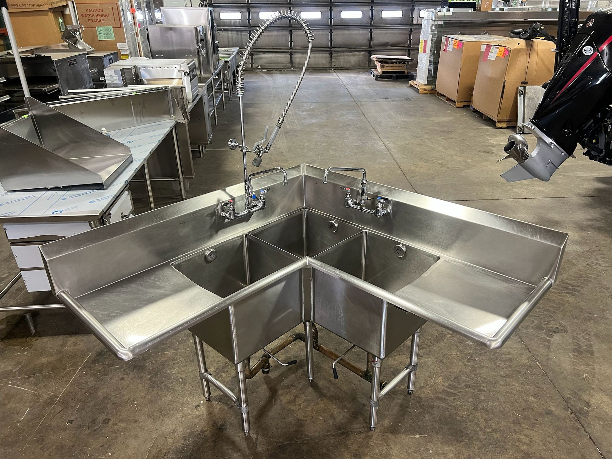 Used Stainless Steel Corner 3 Compartment Sink with Faucets and Drains
