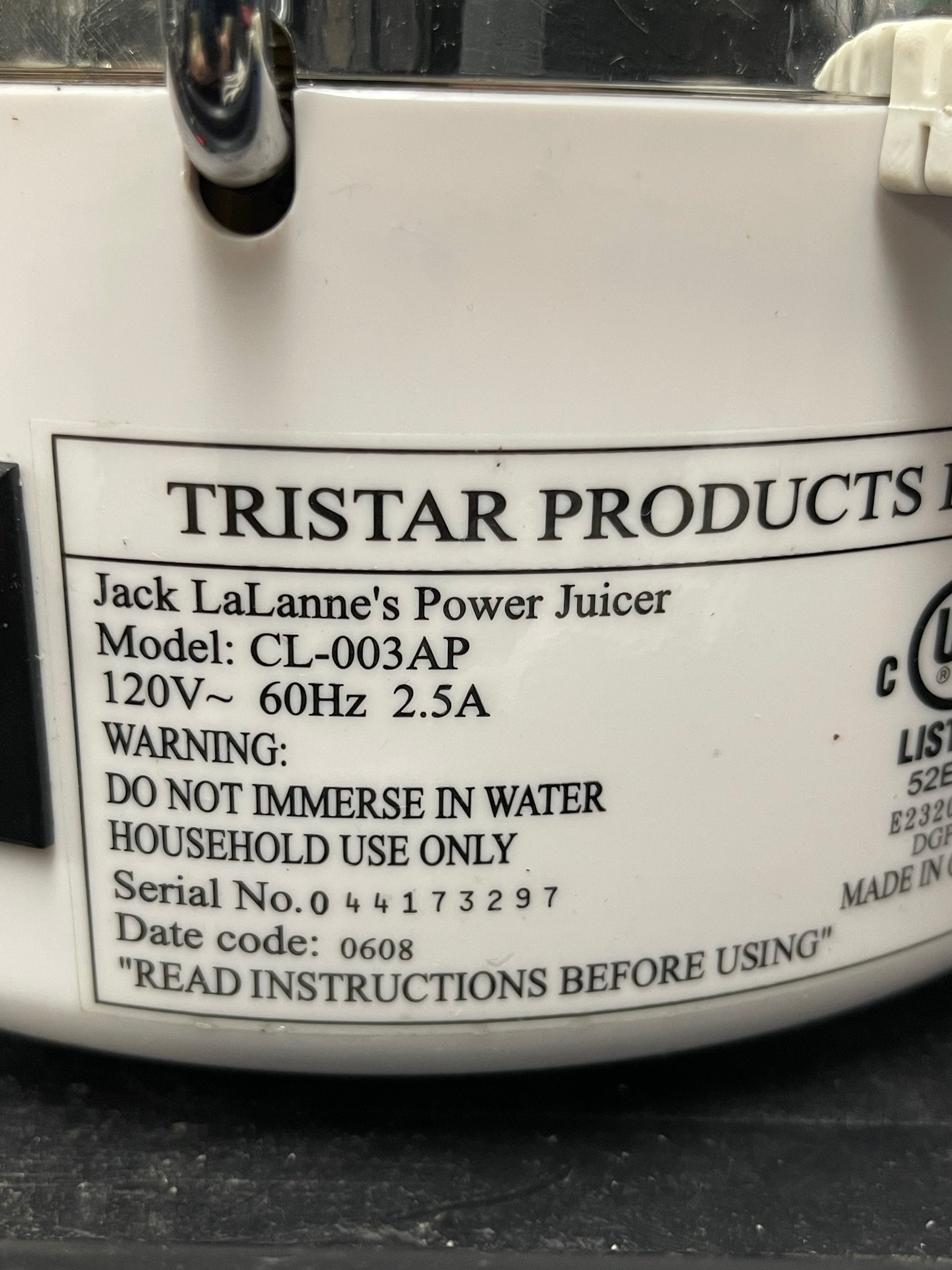 Used Tristar Jack LaLanne Centrifugal Deluxe Juice Extractor Machine 120V