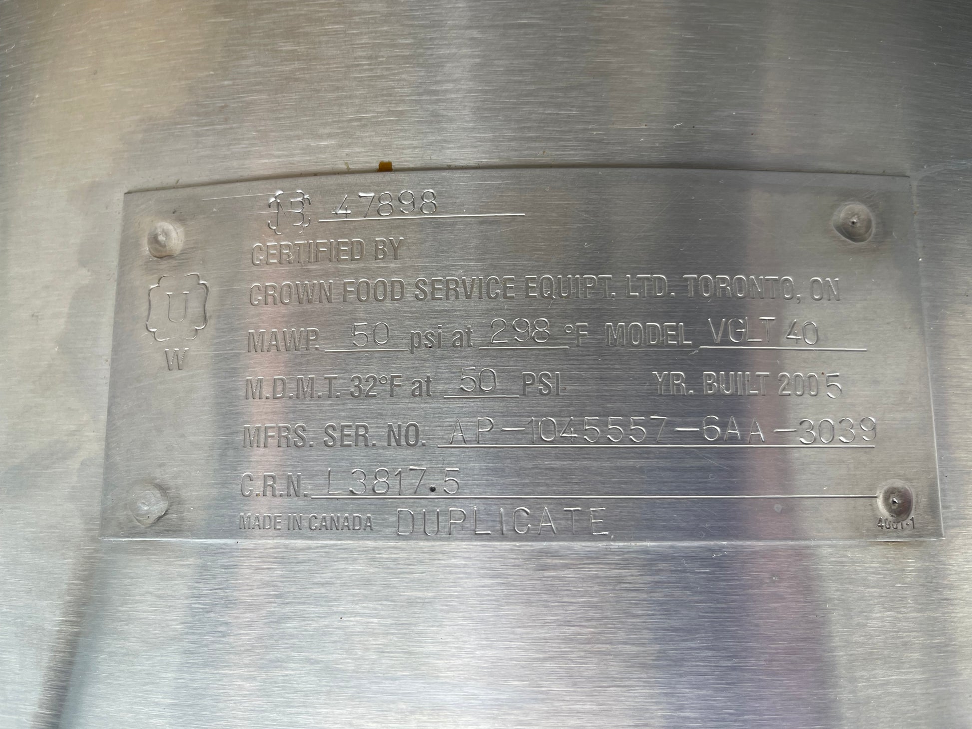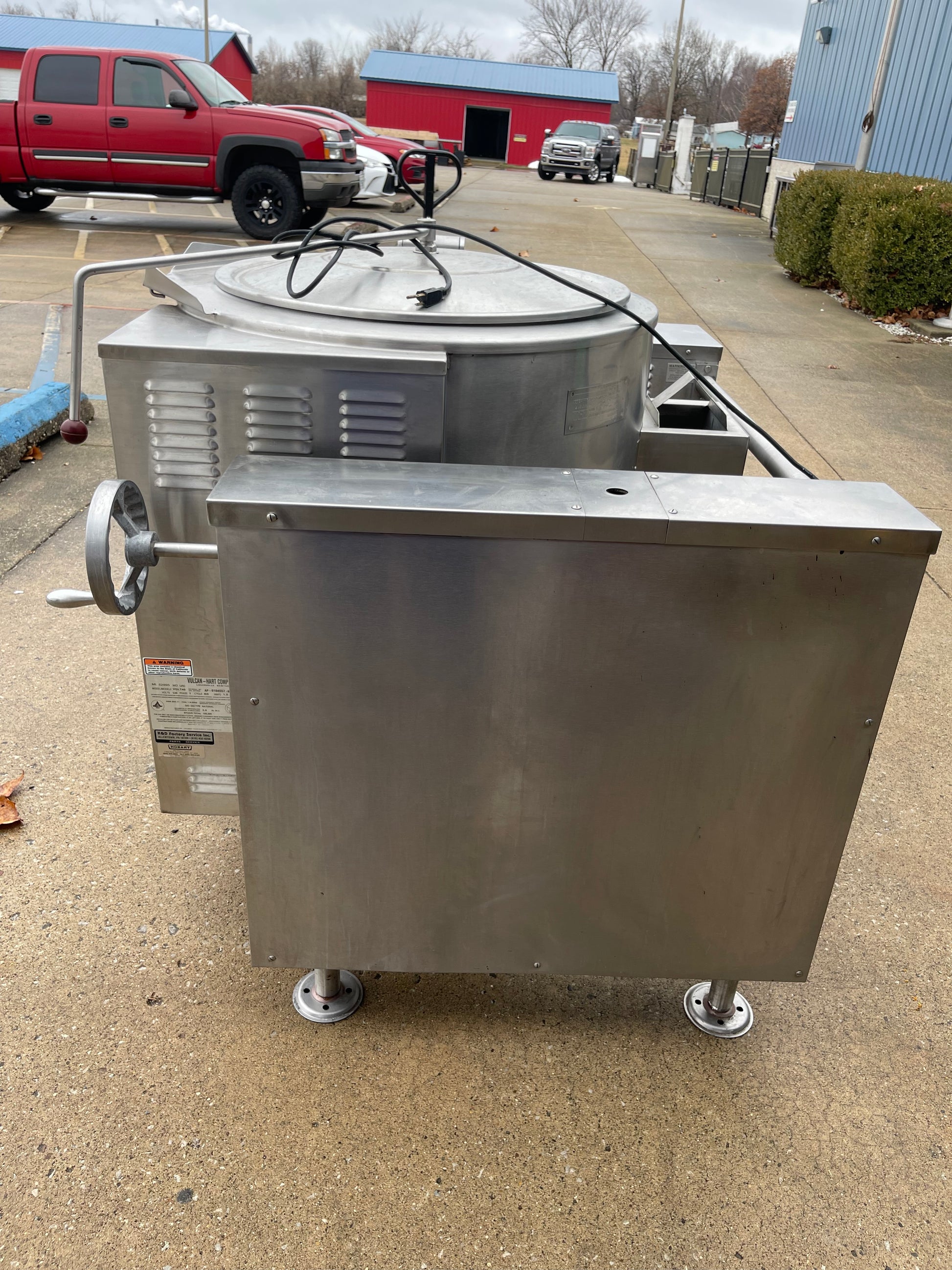 Used Vulcan VGLT-40 NG Stainless 40 Gallon Jacketed Tilting Steam Kettle 100,000BTU