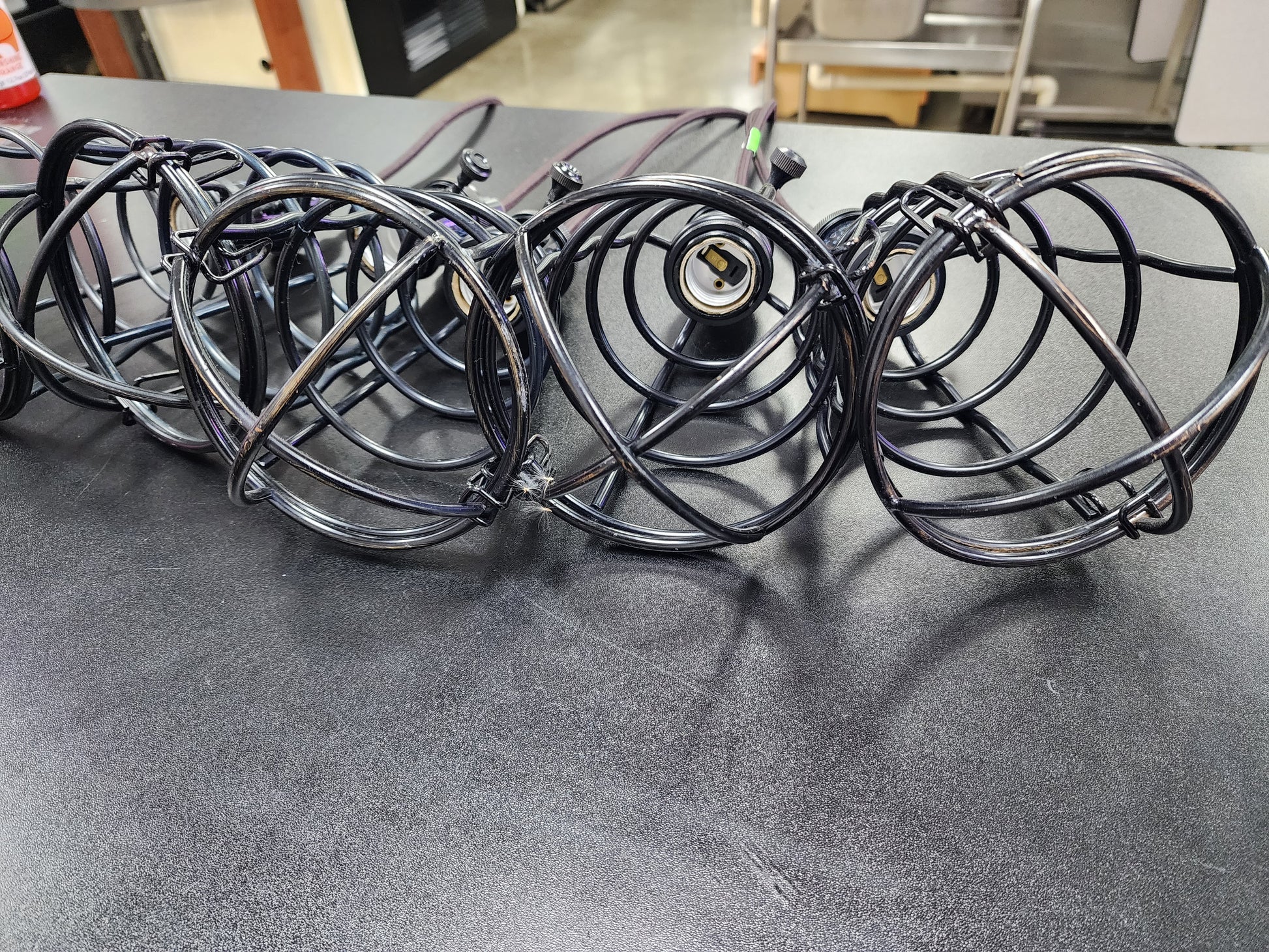 Used Vintage Adjustable Pendant Lamp Fixture Black Cage (5)