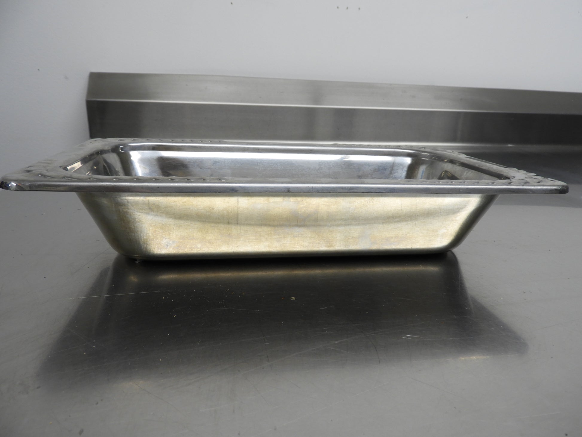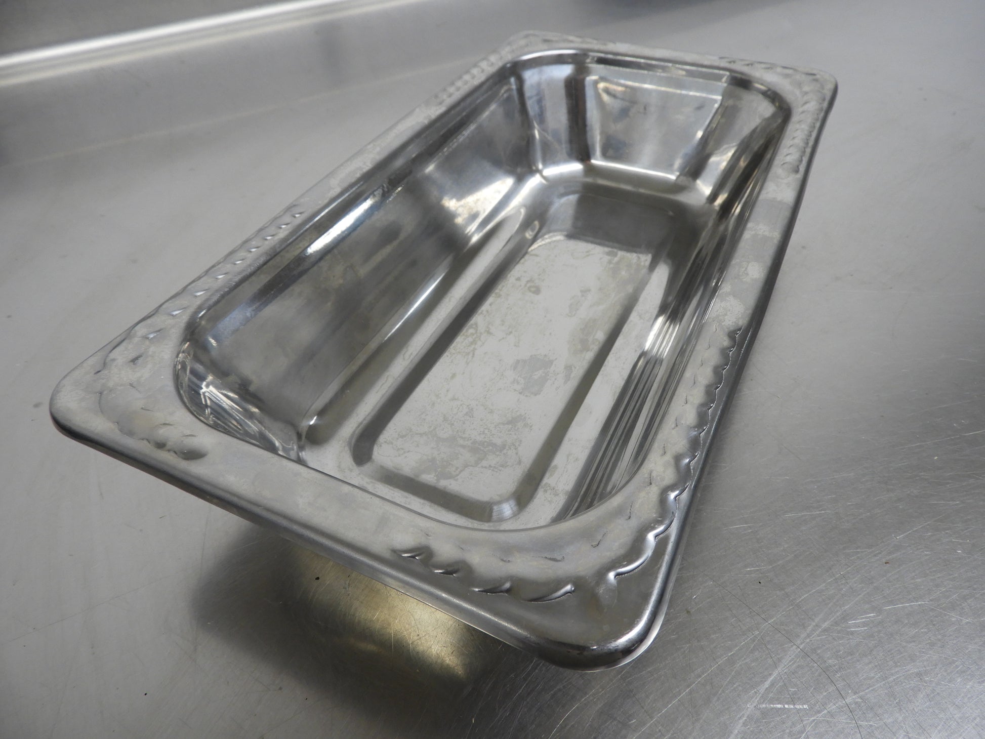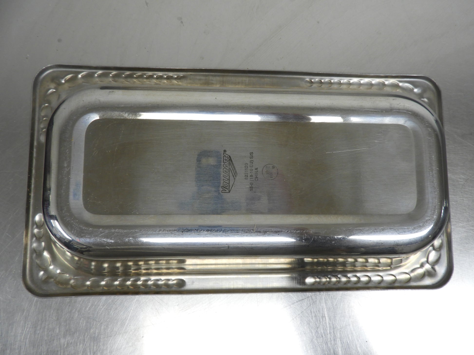 For the ultimate in food presentation, display all your appetizers, entrees, sides and desserts in this 2 1/2" deep Vollrath Miramar® 8231120 1/3 size rectangular food pan. From savory cheese and breadcrumb stuffed mushrooms to slow roasted chicken with tender vegetables, this pan will provide the perfect backdrop to all of your catering recipes. Easy to use, change, and maintain, this beautiful, mirror-finished, 1.2 mm thick 18-8 stainless steel food pan will create upscale presentations in chafers, heated or refrigerated buffet lines, display cases, and much more while its sleek design and one-of-a-kind embossed pattern also make it a very attractive addition to any buffet. Each unique embossed rim detail is applied to the rim of this insert and given a mirror finish for the utmost elegance. Ensure a beautiful event for your clients and stand out against competition with some of the best display cookware that money can buy.