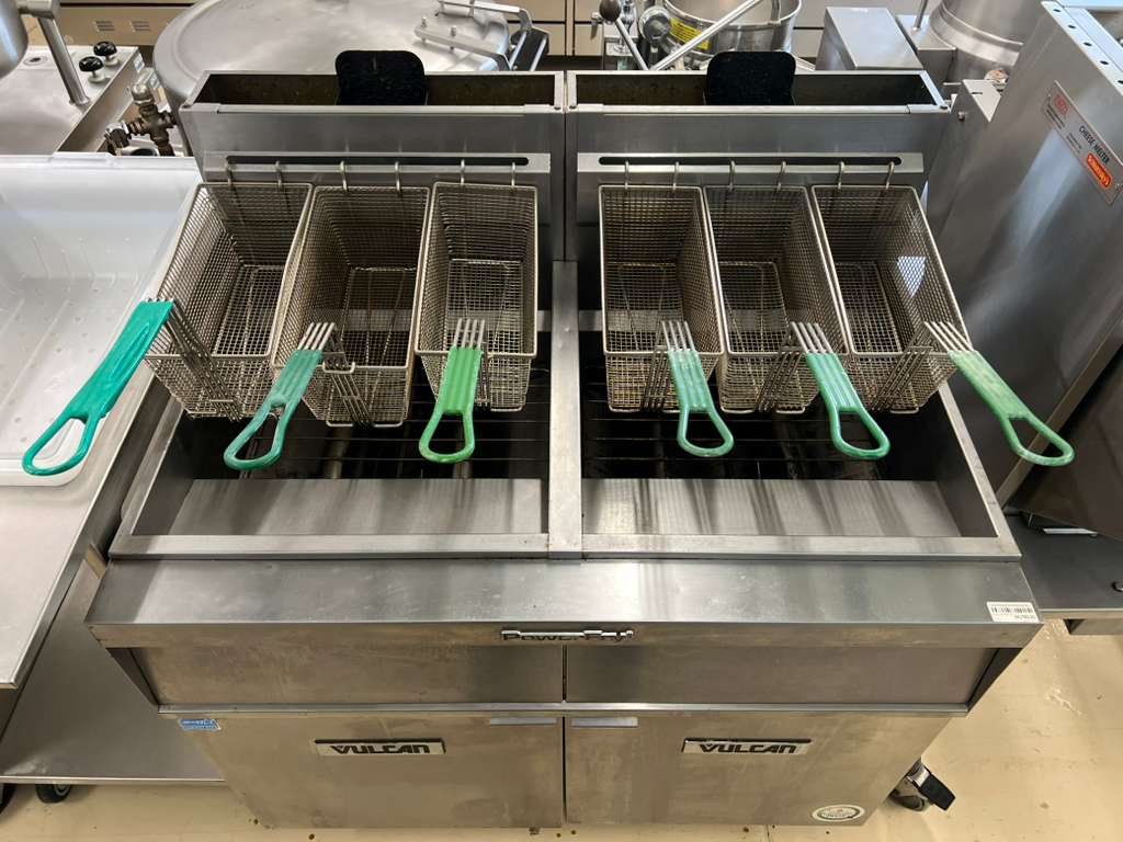 - This fryer system features Vulcan's exclusive ThreePass heat transfer system that passes heat to the oil for a much quicker recovery, yielding 60.0% cooking and 72% thermal efficiency. At its maximum production rate, the flue temperatures are less than 750 degrees Fahrenheit! Plus, to ensure safety for all employees, a hi-limit indicator shuts off the gas connection and standing pilot if the oil temperatures get too high. A large V-shaped cold zone at the bottom of each fry tank prevents crumbs and other debris from burning, which extends the life of your shortening. For ultimate oil preservation, the KleenScreen filtration system aids by removing impurities, which improves the quality and taste of your product. A 1 1/4" full port drain valve makes oil removal a quick and hassle-free process.